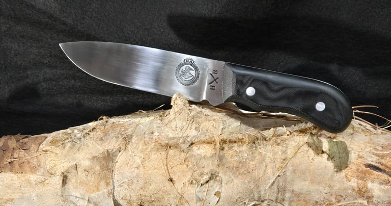 A more modern design, the camp knife, also emblazoned with the FBINA seal, is well suited for most camp-related chores.